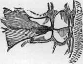 bring ft fairly into view, but not to swell it too much, for then, presenting a rounded surface, it would be apt to roll or slip under the blow. The point to be selected is about two inches below the union of the two portions of the jugular at the angle of the jaw. The fleam is to be placed in a
