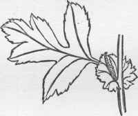 (Fig. 24). In such plants as the wood-angelica and the wild carrot the base only of the petiole embraces the stem, and this form is called an ochrea or boot (Fig. 25). The wild brier, and other wild roses, have stipules adherent to the petiole, or adnate (Fig. 26), and some plants have no visible stipules. In the hawthorn they are leaf-like, or foliaceous (Fig. 27). When they are present the plant is described as stipulate, and when absent, exstipulate.