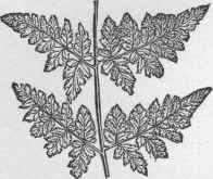 called dentate. The edge of a leaf may be ciliated, or fringed with delicate hairs like eye lashes, or irregularly waved and sinuate, like the leaves of the common oak. The leaves of the dandelion are like none of these, but the large teeth are directed backward, not unlike the teeth of a pit-saw, whence they are termed run cinate (Fig. 22). Usually, if the serratures of