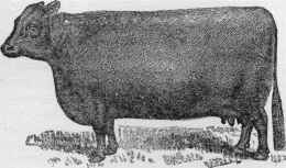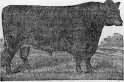 “Their main excellence is in beef production. They are of full average size with our largest common cattle, mature as early as the Herefords, and in the absence of horns are by some preferred as safer in transportation on the railroads to distant city markets. The bulls have a remark able prepotency, like other distinct breeds, to impress their characteristics on the miscellaneous- bred native cows upon which they are used—a
