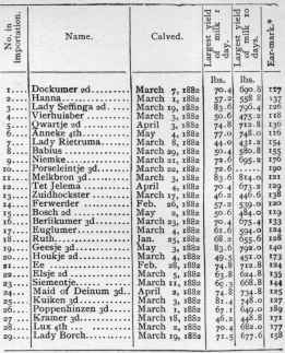 or about 6030 pounds. He also reports single year‘s records, of Queen of Ayr an average of 9404½ pounds for six consecutive years after she was ten years old; Lily Dale, 8984 pounds in 366 days; and two own sisters of Prince of Ayr, of 10,426 and 10,801 pounds.
