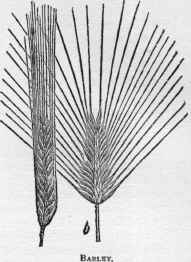 of the taste of the natural barley-grain. This cut, showing heads of two kinds of barley, will