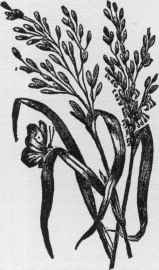 The Wild Oat, although used in some countries for food, is generally regarded as a weed. “ Its panicle spreads equally on all sides, the outer palea are merely bifid, and there are long hairs at the base of the glumes.” Its seed is some times used as an artificial fly for catching trout, but whether the trout were taken by it is not re corded. These oats should not be confounded