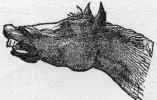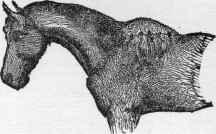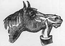 pressed against the horse's neck, thereby imped ing the downward stream within the vessel and causing the blood to gush out.