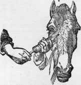 Drinks or Draughts. — Sometimes veterinarians pour liquids down the nostril of the horse. The nostrils terminate immediately over the larynx, and any fluid administered after so un natural a method will probably find its way on to the lungs. Veterinary medicines are too ge nerally composed of pungent and of caustic ma terials, while the nostrils are lined with a high ly sensitive and delicately moist mucous mem brane. The nostril was created to come in con tact with the air, to which it affords the only legitimate passage. The notion of disregarding the mouth and selecting so tender a channel,
