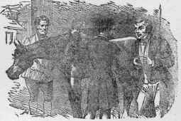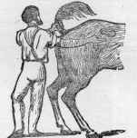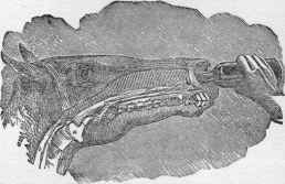 practiced veterinarian, however, takes advantage of the first emotion of surprise which the crea ture experiences at the liberties taken with it. Having the ball ready in the right hand, he, standing on the left side, quickly introduces the bolus into the wondering quadruped‘s mouth.