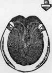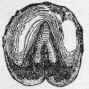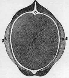 a a. The water driven backward by the forward dilatation of the tongue and the upward movement of the larynx, b b. The full current forced down the gullet, c. The larynx pro pelled against the soft palate, d d. The tongue, dilated ante riorly and compressed posteriorly, e. The soft palate.