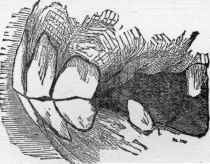 The hand, during the delivery of the ball, being rapidly thrust into the mouth, is frequently cut by the sharp edges of the molar teeth. No knowledge can point out in advance the animal possessed of grinders of this dangerous descrip tion, and the only protection as yet suggested is to cover the hand with a glove. But the use of a glove is objectionable. The medicine being delivered, the hand is quickly withdrawn, and the jaws of the animal are clapped together. The nose is then rubbed somewhat roughly, with