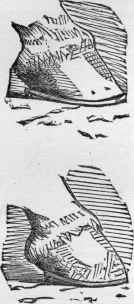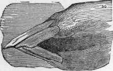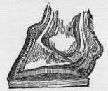 tomary to pinch the sharp edge of the forward end until it becomes rounded. The intention is so to modify the shape as to facilitate the passage of the body down the gullet. Whether the present practice in any degree is beneficial to the animal is doubtful: at all events, the horse would be more fortunate if the sharp edges of the for ward extremity were the only danger it encoun tered from swallowing the physic.