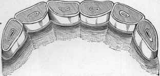 AGE. 211 ![]() 1-Year-Old, Lower Jaw (Brandt). ![]() 2-Year-Old, Lower Jaw; drawn from Nature. ![]() 8-Year-Old. Lower Jaw; drawn from Nature. 4 212 AGE. ![]() 4-Year-Old, Lower Jaw; drawn from Nature. ![]() 5-Year-Old, Lower Jaw; drawn from Nature. AGE. 213 ![]() 6-Year-Old, Lower Jaw ; drawn from Nature. ![]() 7YearOld, Lower Jaw (Brandt), AGE. ![]() 8-Year-Old, Upper Jaw (Walsh). About 2/3 nat. size. ![]() 9-Year-Old, Upper Jaw (Walsh). About 2/3 nat. size. ![]() 10-Year-Old, Upper Jaw (Walsh). About 2/3 nat. size. 214 AGE. 215 ![]() 11 years, Upper Jaw. The marks have disappeared. The Mark, dissected as it ![]() c, The Dentinal star, some ![]() 12 years, Lower Jaw. Change in shape is now clearly defined. 216 AGE. ![]() 13 years, Lower Jaw. ![]() 14 years, Lower Jaw. ![]() 15 years, Upper Jaw. AGE. 217 ![]() 16 years, Upper Jaw. ![]() 17 years, Upper Jaw. ![]() 18 years, Lower Jaw. ![]() 19 years, Lower Jaw. 218 AGE. ![]() 20 years, Lower Jaw. ![]() 21 years, Upper Jaw. ![]() 22 years, Upper Jaw. ![]() 23 years, Upper Jaw. AGE. 219 ![]() 24 years, Lower Jaw. ![]() 25 years, Lower Jaw. ![]() 26 years, Lower Jaw. ![]() 27 years, Upper Jaw. 220 AGE. ![]() 28 years, Upper Jaw. ![]() 29 years, Upper Jaw. ![]() A Parrot-Mouth (lower jaw). The ten lines represent ten THE MARK AND DENTINAL STAR. (Illustrated on page 215.) The mark (also called central enamel, infundibulum, The dentinal star, so called because it is composed of But first, if you want to come back to this web site again, just add it to your bookmarks or favorites now! Then you'll find it easy! Also, please consider sharing our helpful website with your online friends.