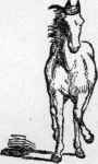 Of the hind legs is common among draft horses, especi ally those that are worked on hilly roads. The heel is hightened, and the first remedy is high calkins (Fig. 87). If the horse is worked, the foot and leg assume the po sition represented in Fig. 88.