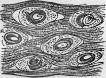 Fig. 159. Pork Flesh Worm (Trichina Spiralis), imbedded in the flesh.