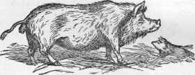 Unlike cattle and sheep, the pig has but one stomach, which is nearly as simple in structure as that of the horse. Its teeth are adapted to the mastication of many kinds of food. The tushes are formidable weapons.